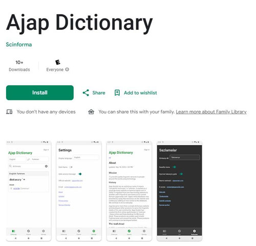 Ajap Dictionary is built to support language learners, teachers, students, translators, and enthusiasts working with the Turkmen language.