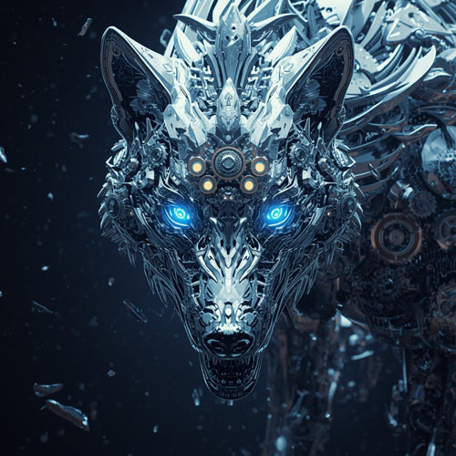 Not copied images, but completely new pictures created from just a short prompt — like “a metallic wolf.”