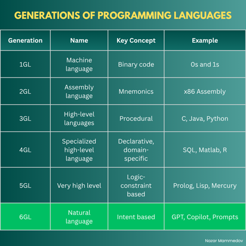 Now, natural language is emerging as the sixth generation of programming, where you can generate working applications without explicitly writing code.