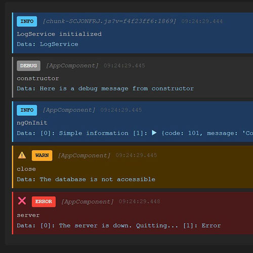 debug,info,warn,error) and color them. - Show which component or function the log came from, so that you find them easily and fast.